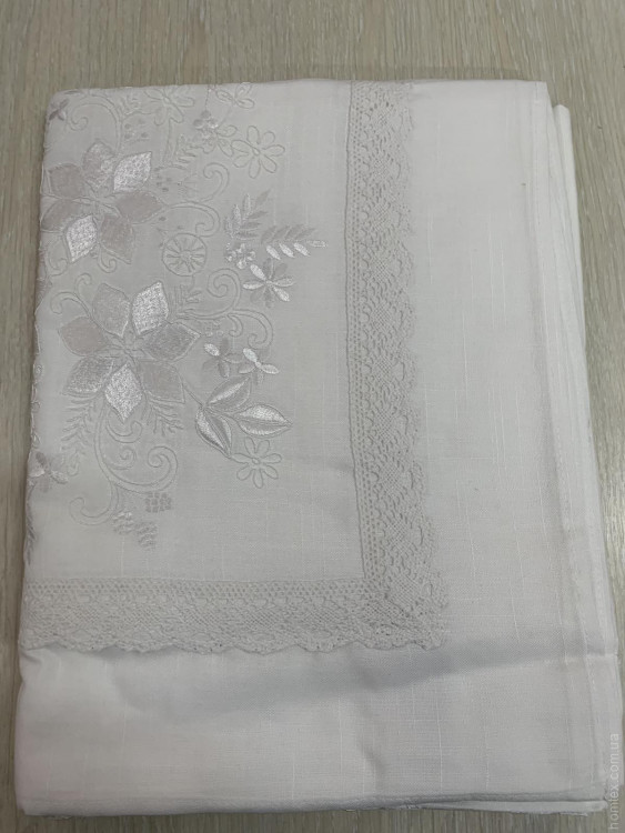 Наявність на скатертині вишивки створює додатковий затишок на вашій кухні.