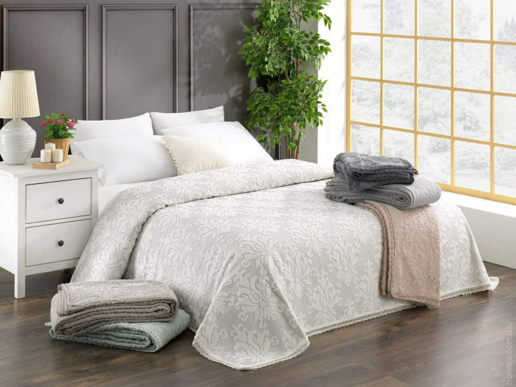 Жакардове махрове простирадло з мереживом Moss Home 220х240 см